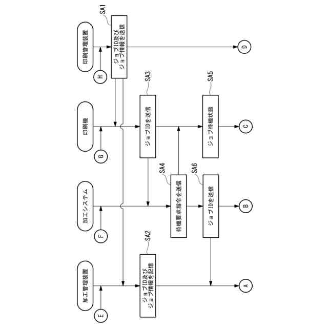 印刷物を製造するための製造工程手順が登録されたジョブ情報を識別するためのジョブIDを前記前処理機から受信する受信手段と、