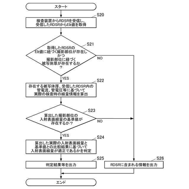 線量管理装置においては、医療被ばくによる被ばく線量の基準値を示すガイドラインである診断参考レベル(DRLs)による線量管理が行われている。DRLsでは、検査の種類又は検査内容ごとに、標準的な体格の患者に対する目安となる最適な放射線量が示されている。線量管理装置は、線量情報の標準規格であるRDSR内に含まれる撮影部位情報に基づいて入射表面線量を算出し、算出した入射表面線量とDRLsとを比較することで患者の線量管理を行う。