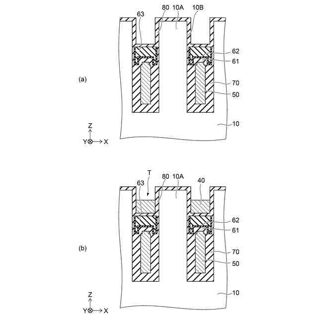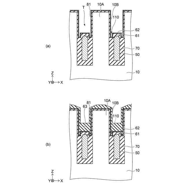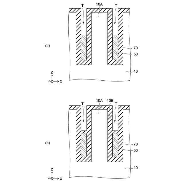 (a)及び(b)は、実施形態の半導体装置の製造方法を示す模式断面図である。