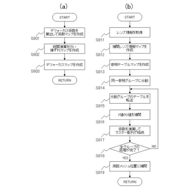 特許文献1には、レンズ毎のレンズ枠のケラレ形状の情報を用いて、瞳分離された像の像ずれ量からデフォーカス量に変換する変換係数を算出する方法が開示されている。ケラレ形状に対する変換係数を求めるパラメータをメモリ部にテーブルとして記憶しておき、決定したケラレ形状に対応するパラメータをメモリ部から取り出して演算を行う。特許文献2には、メモリ部に記憶された復元フィルタを用いてデコンボリューション処理を行うことで画像を補正する方法が開示されている。特許文献1および特許文献2において、必要なパラメータはメモリ部に記憶されている。