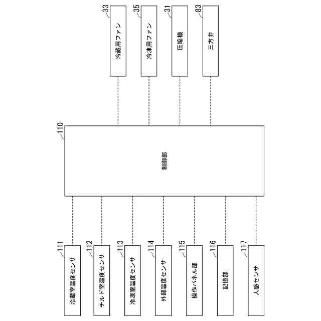 実施形態の冷蔵庫の機能構成の一部を示すブロック図。