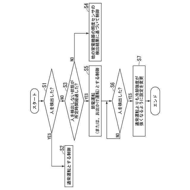 【解決手段】実施形態の冷蔵庫は、人を検出可能な第1検出部と、光を検出可能な光検出部を有する他の機器に関する情報を受信する通信部と、第1運転と、前記第1運転よりも消費電力を節約可能な第2運転とを切り替え可能な制御部と、を備え、前記制御部は、前記第1運転の実行中に、前記第1検出部で人が検出されない状態が所定時間に達するまでは、前記光検出部の検出結果に基づいて生成された他機器情報に基づいて冷蔵庫を制御し、前記第1検出部で人が検出されない状態が前記所定時間に達した場合、前記第2運転を行う。