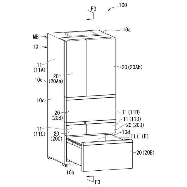 図2中に示された冷蔵庫のF3-F3線に沿う断面図。