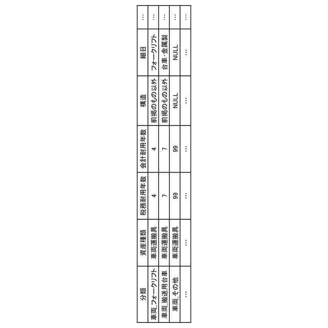 前記資産毎に、分類、資産種類、税務耐用年数、会計耐用年数、構造および細目を対応付けた資産分類マスタと、