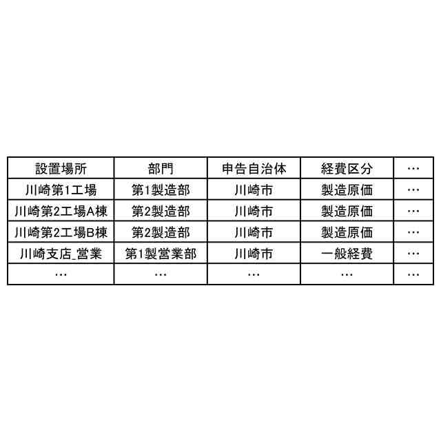 前記資産毎に、設置場所、部門、申告自治体および経費区分を対応付けた設置場所マスタと、