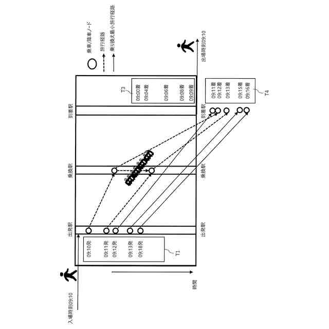 ここで、例えば入場駅から出場駅までの間に複数の乗換可能な乗換駅が存在する場合には、乗換時間が最短となる乗換駅で乗り換えたものとして当該乗換駅を経由する一つの経路候補に旅客を割り当てる方法が考えられる。しかし、乗換駅を一律に決定する手法では、旅客の実際の乗換駅の利用状況から乖離してしまい、混雑予測の精度が低下する問題が生じる。