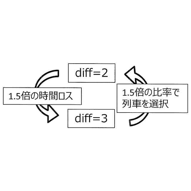 前記改札機通過データ及び前記現行列車のダイヤデータに基づいて割当指数を算出し、前記割当指数に応じて、1人の前記旅客を複数の前記経路候補に割り当てる列車割当部と、