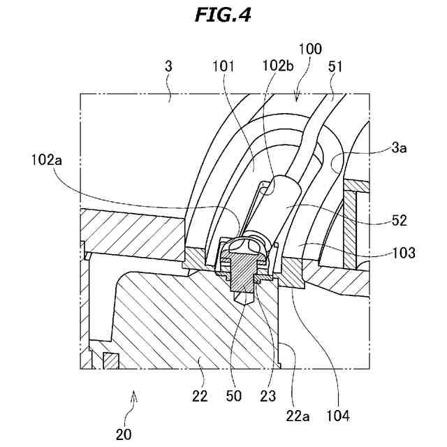 従来、モータハウジングに設けられた孔を通じてモータ内部から動力線を引き出した後に、孔を封止キャップで塞ぐ構成が知られていた。しかし、封止キャップは孔から脱落しやすく、作業性に改善の余地があった。