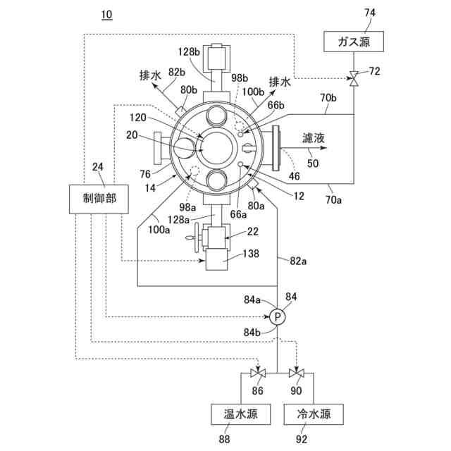 前記容器状態変更部は、濾過準備工程を実行するための濾過準備状態と、濾過工程を実行するための濾過状態とを切り替え可能に構成され、
