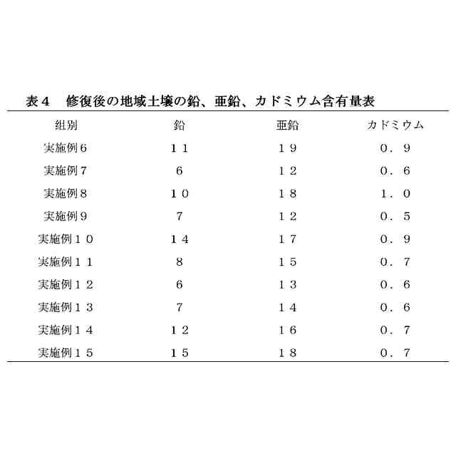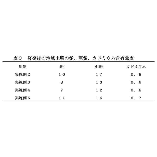 【解決手段】この方法は、以下ステップを含み:S1、前処理:修復すべき領域を緩耕、耕起、回転耕起し、その後自然風乾し、S2、発酵処理:土壌を円錐形土壌パイルに積み上げ、発酵菌、粗い砂、木炭粉末と混合し、10~20日間自然発酵させ、S3、植物濃縮処理:土壌に草本植物、樹木、マメ科作物を順次植えて、土壌中の重金属を濃縮・浄化し、S4、真菌濃縮処理:土壌に真菌を植えて土壌中の重金属を濃縮・浄化し、S5、消毒減菌処理、S6、pH調整処理。本発明の修復方法は、重金属物質の移行を減少させ、環境と生態系を最大限に保護することができる。