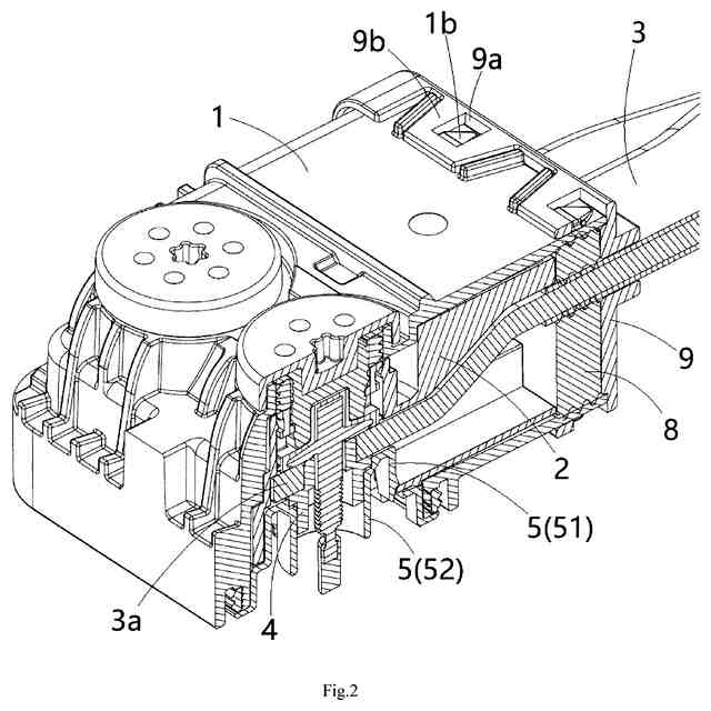 前記締結アセンブリ(6)は、前記内側絶縁ハウジング(2)に予め取り付けられ、制限フランジ(11a)が、前記第1の絶縁体(62)に形成され、制限突起(2a)が、前記内側絶縁ハウジング(2)に形成され、