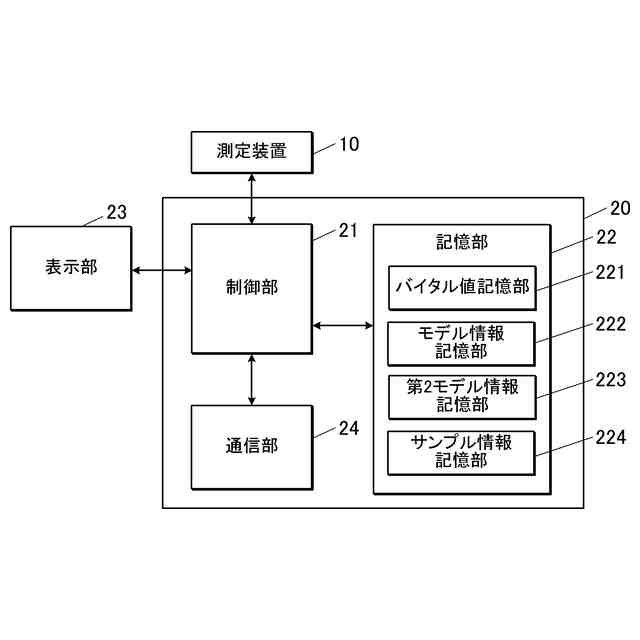 前記測定部により測定された少なくとも2種類のバイタル値から、前記少なくとも2種類のバイタル値間の相関を示す第2モデル情報を生成する第2モデル情報生成部と、