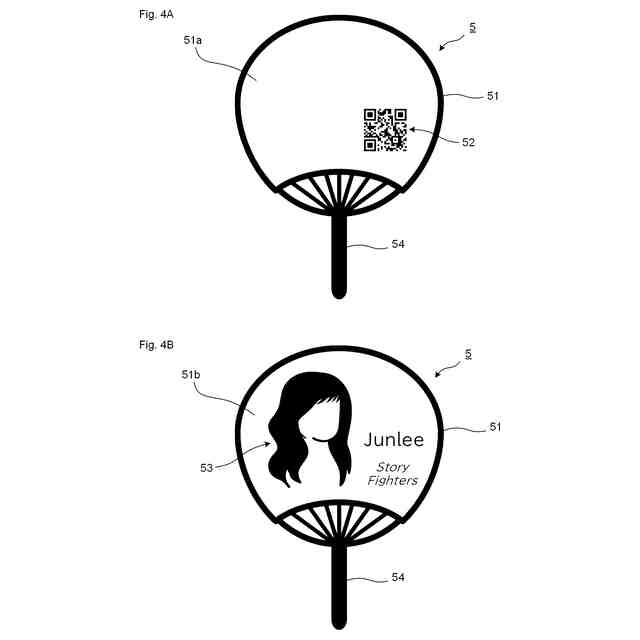 グッズ(物品)の一例であるうちわ5を示す模式図であり、図4Aはうちわ5の一方面51a側、図4Bは一方面51aの裏面である他方面51b側を示している。