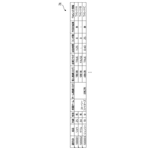 選手(メンバ)に関する情報のデータ構造である選手情報テーブル7bの一例を示している。