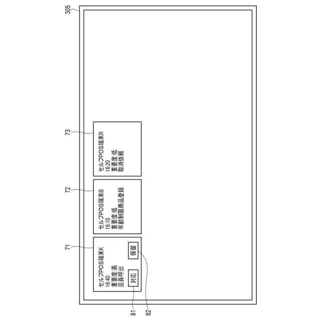 多くのセルフPOS端末を導入する店舗では、店舗のスタッフは、複数のセルフPOS端末を監視し、スタッフの呼出等の各セルフPOS端末で発生する事象に対処しなければならない。