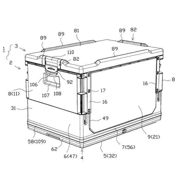 従来、物品の運搬等に使用される容器として、上方に開口する略箱状の容器本体と、容器本体に被せられる蓋体とを備え、蓋体に対して固定具を装着し、蓋体を容器本体に被せることで、固定具の係止部が容器本体の被係止部に係止されるといった技術がある(例えば、特許文献1等参照。)。