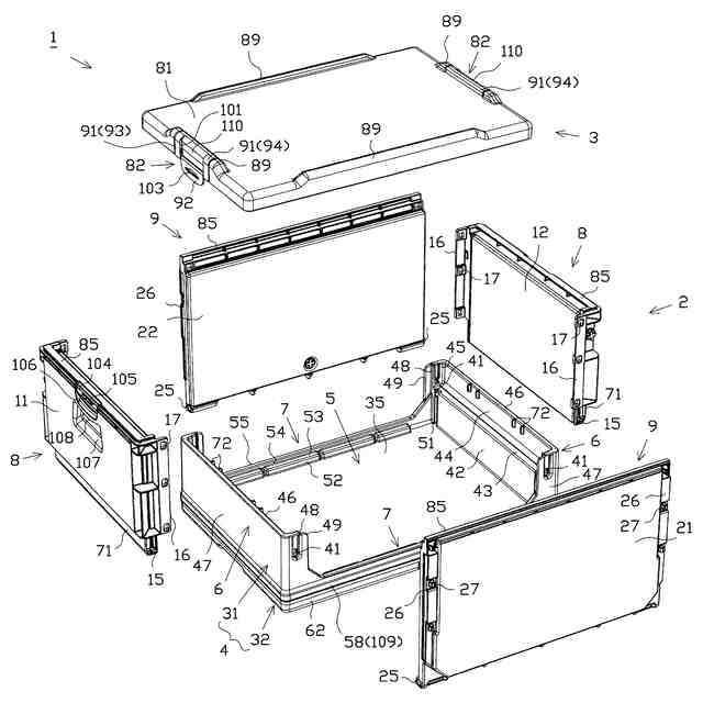 【解決手段】容器1は、上方に開口する略箱状の容器本体2と、容器本体2に対して着脱自在に被せられる蓋体3とを備える。蓋体3は、蓋体3同士を同じ向きとして上下に積重ねることで蓋体段積状態とすることが可能に構成される。蓋体3は、容器本体2に被せられた場合に当該容器本体2の外面に対向する対向部92を備える。対向部92には、当該対向部92の厚み方向に貫通する係止孔部103が設けられ、蓋体3が容器本体2に被せられた場合に当該容器本体2に設けられた係止突部105と係止状態とされる。蓋体3は、蓋体段積状態において他の蓋体3の対向部92を受容可能な受容凹部110を備えている。