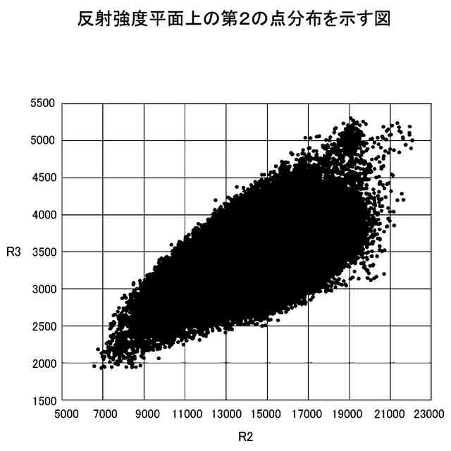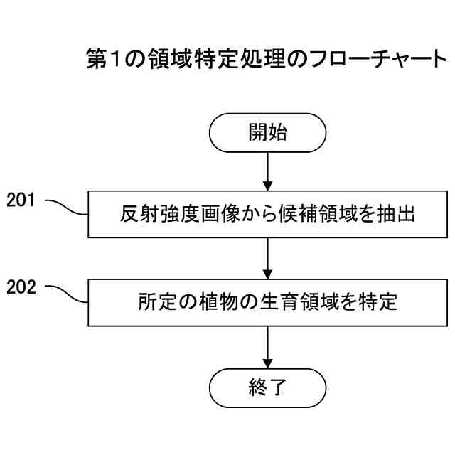 【解決手段】コンピュータは、観測領域において観測される反射光の反射強度を画素値として含む、観測領域の反射強度画像を、所定の植物の反射強度から求められた閾値に基づいて2値化することで、反射強度画像から候補領域を抽出する。コンピュータは、候補領域に含まれる複数の画素を2つのグループに分類した分類結果から、2つのグループのうち一方のグループに属する画素に基づいて、所定の植物の生育領域を特定する。候補領域に含まれる複数の画素は、複数の画素各々の位置に対応する第1反射強度及び第2反射強度に基づいて2つのグループに分類される。第1反射強度は、反射光の複数の波長のうち青の波長における反射強度を表し、第2反射強度は、反射光の複数の波長のうち赤外成分の波長における反射強度を表す。