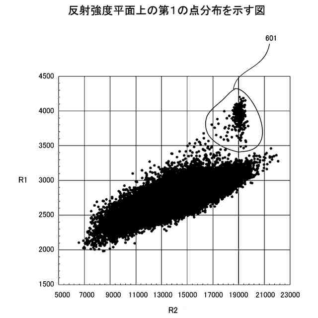 前記候補領域に含まれる前記複数の画素は、前記複数の画素各々の位置に対応する第1反射強度及び第2反射強度に基づいて前記2つのグループに分類され、