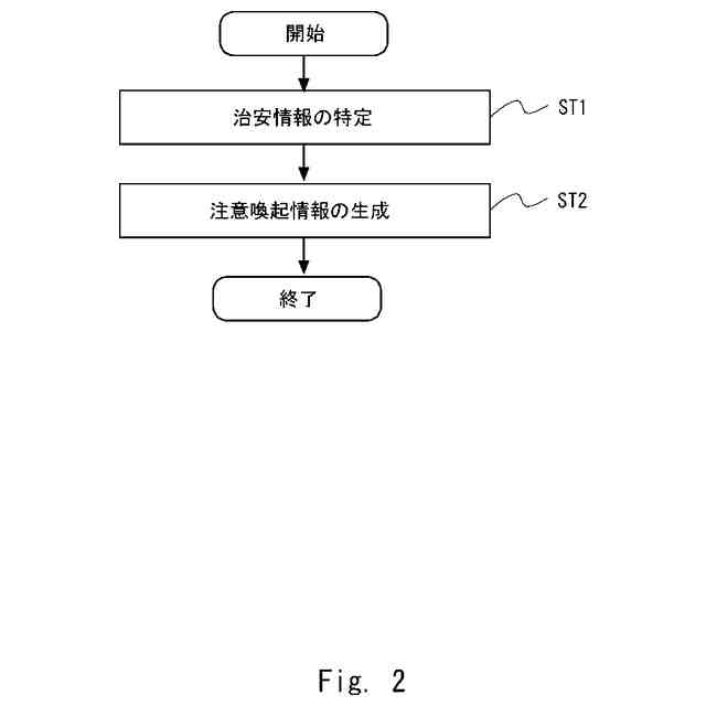前記不安場所に新たなユーザが到達する前に前記新たなユーザに通知される情報であって、前記治安情報を含む注意喚起情報を生成する。