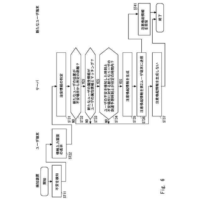 【解決手段】本開示に係るサーバは、ユーザが不安を感じた不安場所に関する情報に基づいて、不安場所の治安に関する情報を示す治安情報を特定する特定部と、不安場所に新たなユーザが到達する前に新たなユーザに通知される情報であって、治安情報を含む注意喚起情報を生成する生成部と、を備える。