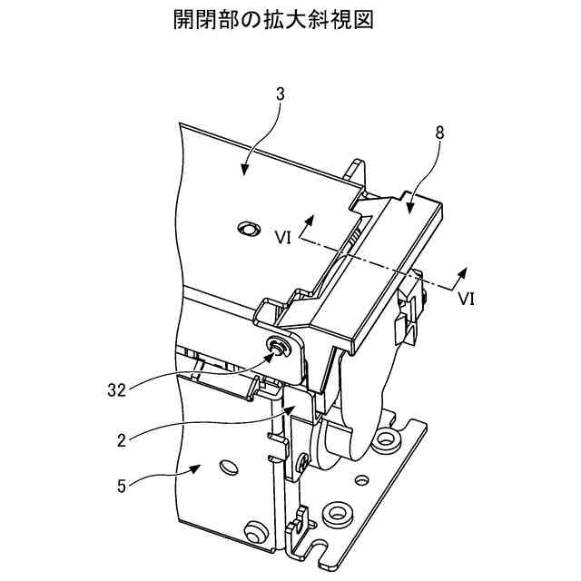 前記開閉レバーは、前記係合部の前記基端部に設けられて前記係合部の先端部とは反対側で前記把手部との間に鈍角をなす方向へ突出する補助突起をさらに有する、