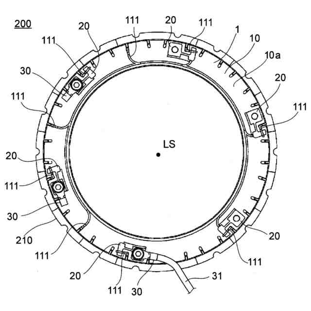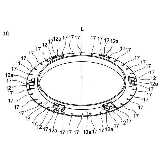 前記バスバーホルダ(10)の内周縁部には、前記中心軸(L)に沿って延びる環状壁部(14)が形成されている、