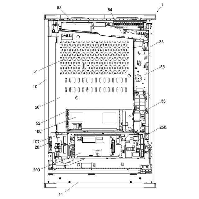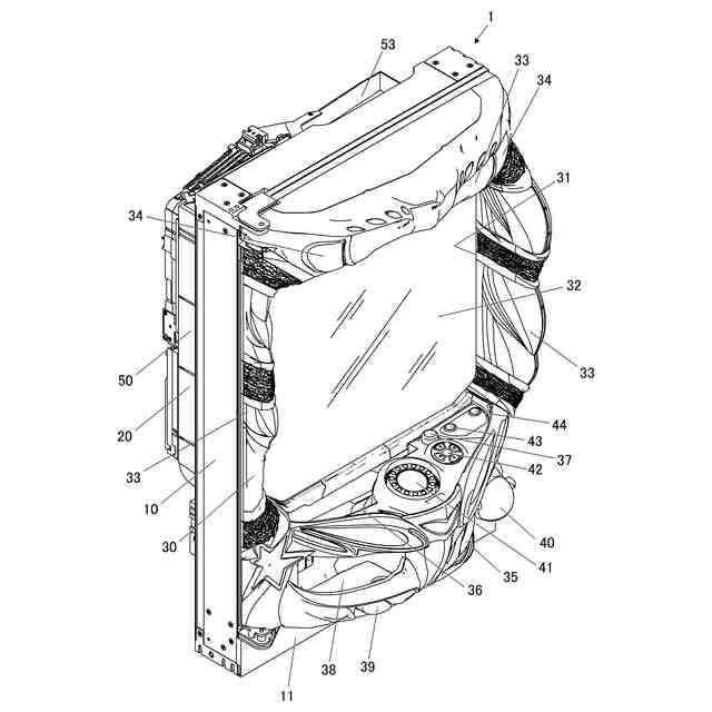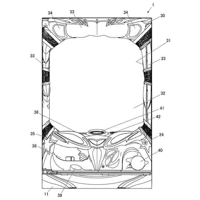 外枠10は、遊技機1の外周を構成し、遊技機1を遊技店の島設備に設置する際に島設備に固定されるものである。この外枠10は、図5に示すように前後に貫通する矩形枠状をしており、前面下部には装飾部材11が設けられている。