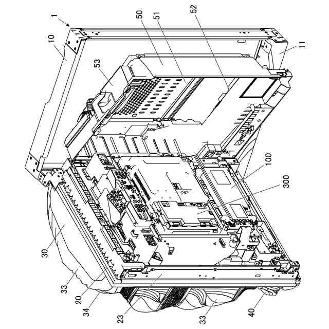 第1実施形態:遊技機の裏面側から見た斜視図である。