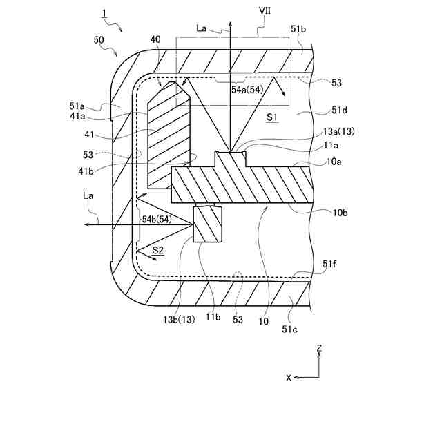 図6のVII-VII部に対応した一実施形態に係る照明装置の一部拡大図である。