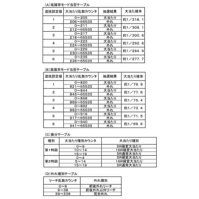 主制御装置で使用されるテーブルの一例を示す図。