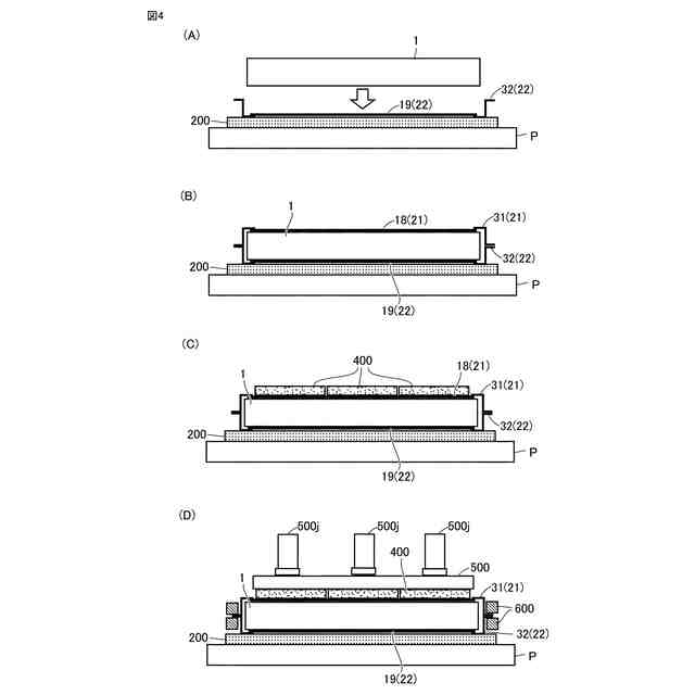 【解決手段】第2弾性体200が載置された設置台Pの上に、第1外装体22、蓄電体1、第2外装体21を配置する(図4(A)、(B))。第2外装体21の第2集電板18に、第1弾性体400を配置する(図4(C))。第1弾性体400を、拘束板500を用いて、蓄電体1の積層方向へ押圧し、第2外装体21の第2集電板18が第1弾性体400によって押さえられた状態で、溶着治具600により、第2ラミネートフィルム31(ラミネートフィルム)と第1ラミネートフィルム32(ラミネートフィルム)の外周部を溶着する(図4(D))。