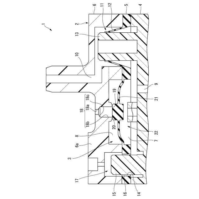 【解決手段】流入通路9および流出通路10が開口する圧力室3と、圧力室3を上流側流体室7と下流側流体室8とに仕切るダイヤフラム5を備える。上流側流体室7から下流側流体室8に流体を流す逆止弁11と、上流側流体室7から流体を排気する微排気通路17と、下流側流体室8から流体を排気する排気通路18とを備える。下流側流体室8の壁には、排気通路18が開口する弁座19が形成され、ダイヤフラム5は、弁座19に着座する弁体20を有する。弁座19とダイヤフラム5は、上流側流体室7と下流側流体室8の差圧で動作する差圧弁22を構成する。排気通路18は、下流部18aと上流部18bとで通路断面積が異なり、上流部18bの通路断面積は、下流部18aの通路断面積より大きい。