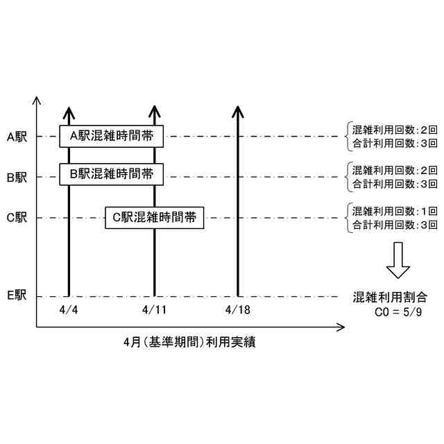 図11は、本発明のピークシフト処理の実施形態に係るピークシフト対象者の混雑利用回数の算出方法の具体例を示す図である。