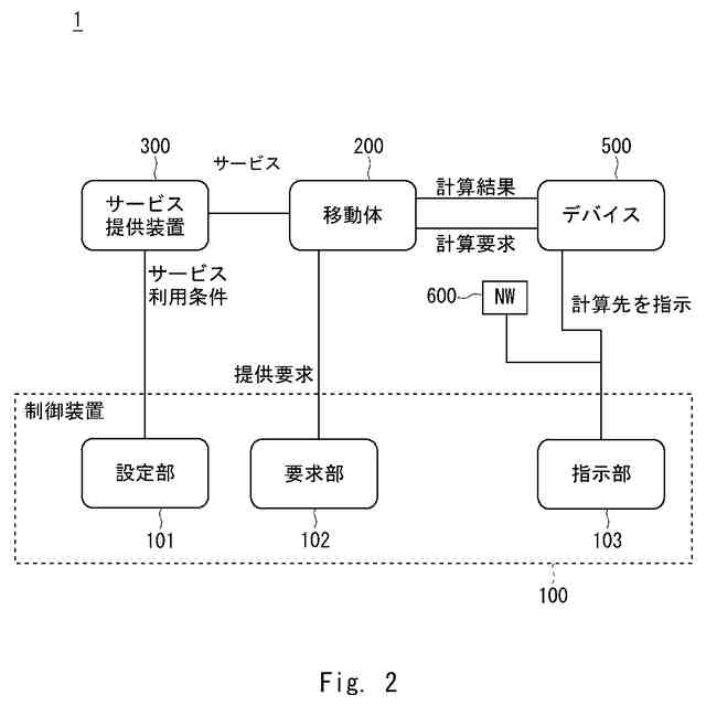 【解決手段】本実施形態にかかる制御装置は、計算資源となるプロセッサを有する移動体又は移動体通信端末に対して、所定のサービスを提供するサービス提供装置のサービス利用条件を設定する設定部と、サービス利用条件に従ってサービスを受けている移動体又は移動体通信端末を対象装置として、計算資源の提供を要求する要求部と、所定のエリアにあるデバイスから発生する計算要求を対象装置に到達させるための指示を送信する指示部と、を備えている。