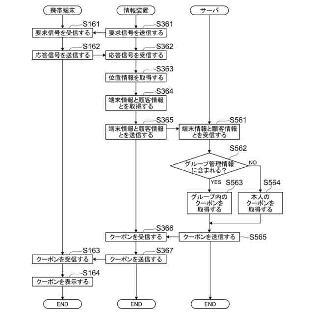 前記第2の取得部が取得した顧客識別情報を用いて、顧客識別情報と顧客が保有する特典とを対応付けて記憶する記憶部から、前記グループの携帯端末を所持する複数の顧客の何れかが保有する特典を取得する第3の取得部と、