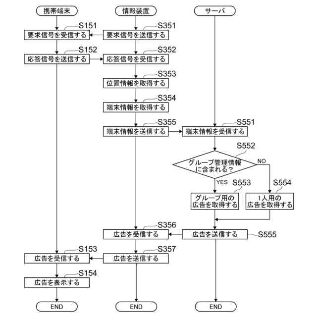 更に、本発明は、コンピュータに、顧客が所持する携帯端末から送信される送信データに基づいて特定された携帯端末の位置と、送信データから取得された携帯端末の識別情報とを用いて、互いに接近した位置にある複数の携帯端末を同じグループの携帯端末と推定する機能と、グループの携帯端末を所持する複数の顧客のうち少なくとも1人の顧客にグループ用のコンテンツを提供する機能と、を実現するためのプログラムも提供する。