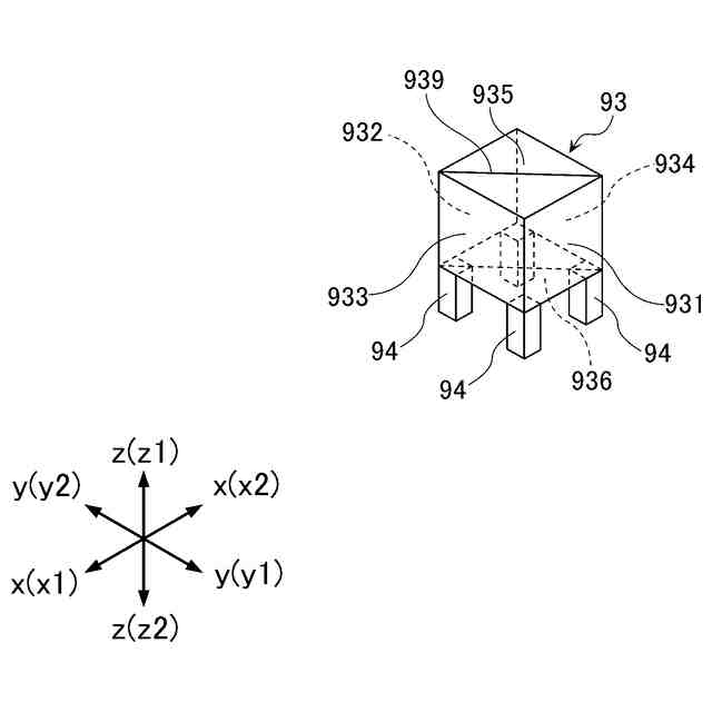 前記検出ターゲットは、入射した光を分割する光学部品からなり、前記第1方向に直交する水平な第2方向の一方側を向く第1面と、前記第2方向の他方側を向き、且つ前記第1面と平行な第2面と、前記第1方向の一方側を向く第3面と、を有し、