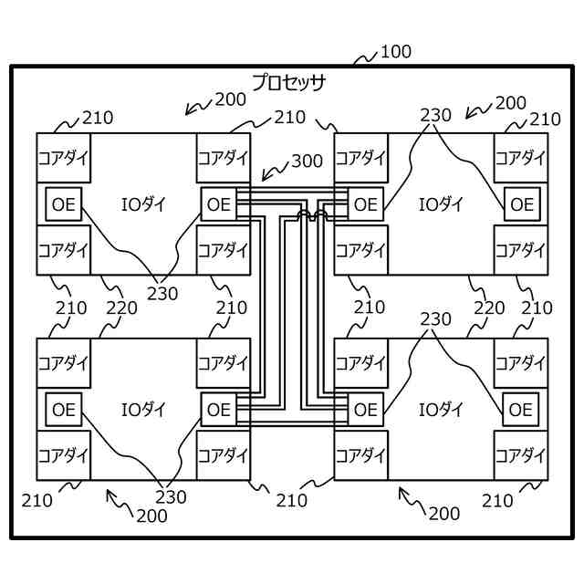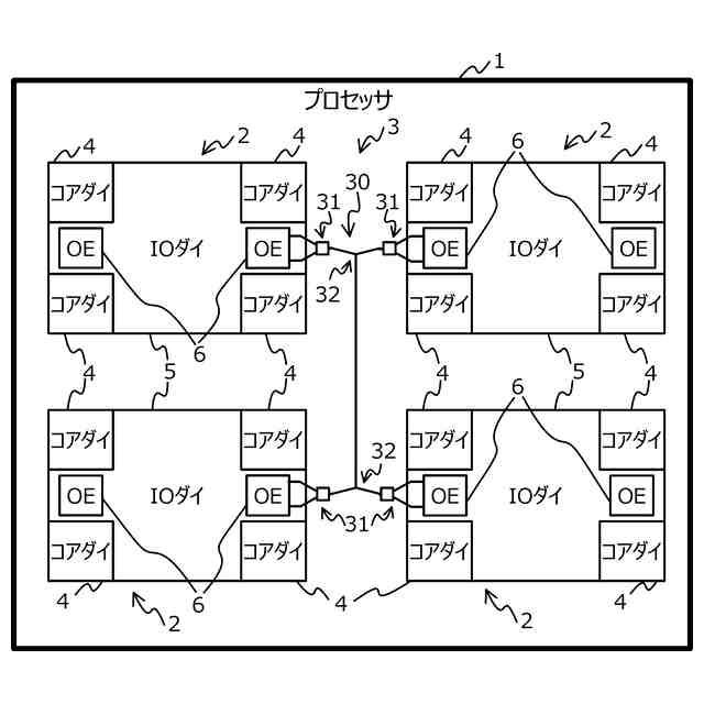 CPU(Central Processing Unit)等のプロセッサ開発において、コスト又は歩留まりを改善するための手法の1つとして、チップレット化と呼ばれる実装手法が知られている。チップレット化とは、1つのチップに集積されていた大規模な回路を複数の小さなチップ(以下、「チップレット」と表記する場合がある)に分割し、基板上に複数のチップレットを搭載させて1つのパッケージを形成する手法である。1つのチップレットには、例えば、プロセッサのコアを含むコアダイと、コア間の入出力(IO:Input / Output)部を含むIOダイとが実装されることがある。