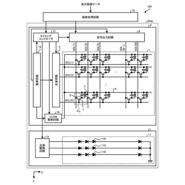 図2は、表示装置の主要構成を示す模式的な回路図である。