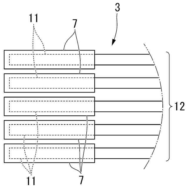上記製造方法の工程7となる補強層の印刷がなされた母材の上面図である。