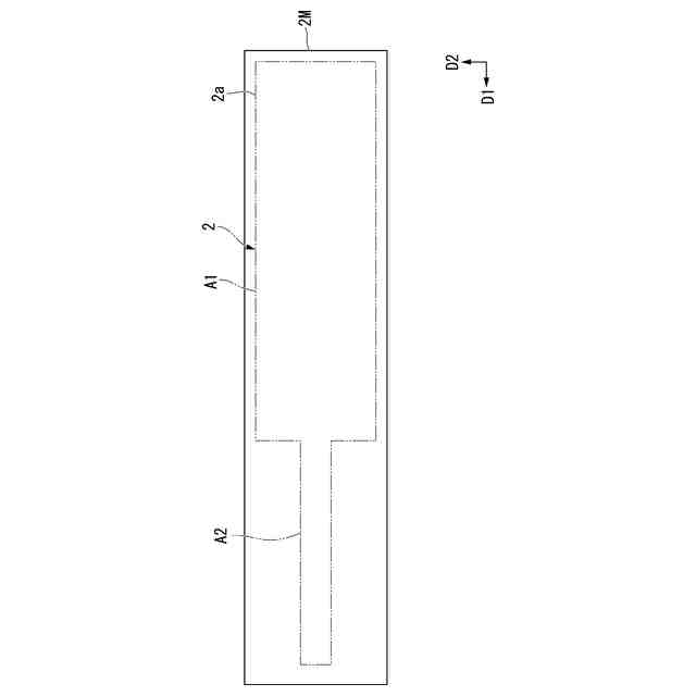 上記製造方法の工程2となる第二導電層の印刷がなされた母材の上面図である。