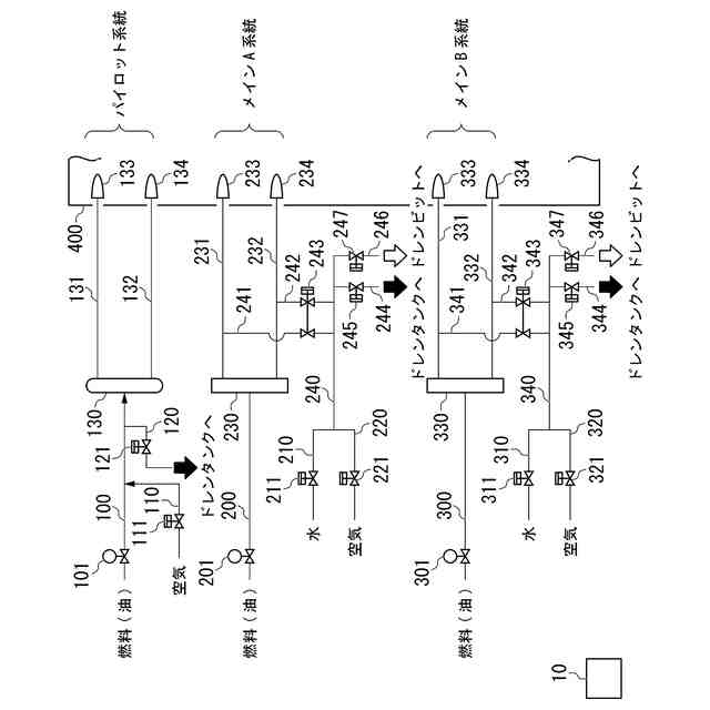 特許文献1には、油燃料とガス燃料を切換えて使用でき、かつ燃料供給系統がメインA、メインB、パイロットの3系統を有するガスタービンの燃焼器のノズルにおいて、燃料を油からガスに切替えた直後に、メインA、メインB、パイロットの各系統に水や空気を流すことにより、各系統に残留する油をパージする方法が開示されている。このパージ方法によれば、油燃料が残留したままガス燃料を燃焼させることにより、高温状態に置かれたノズル内の油燃料がコーキングして固化し、ノズルを閉塞してしまうことを防ぐことができる。しかし、ノズル内の未使用の燃料を排出してしまうことになり、無駄が生じる。