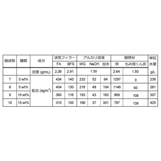 【解決手段】一実施形態に係るジオポリマー組成物は、少なくともフライアッシュ及び高炉スラグ微粉末を含む活性フィラーと、アルカリ溶液と、砂及びもみ殻くん炭を含む細骨材とを含み、前記もみ殻くん炭の含有量は、前記細骨材の全重量に対し0%越え10%以下である。