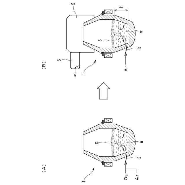 が脱炭のために有効に働かず、クロムを酸化してしまい脱炭効率が悪くなることから溶鋼中のC量が一定レベルまで低下した時点で、炉内を減圧とした上、溶鋼中にArガス等の非酸化性ガスのみを撹拌ガスとして吹き込み、酸化クロムと溶鋼中のCとの間で反応を行わせ、脱炭を行う減圧精錬を行ない、その後、溶鋼に還元剤を添加し、スラグ中に残っている酸化クロムを還元し溶鋼内に回収する還元処理が行われる。このような一連の精錬方法については下記特許文献1等に記載されている。