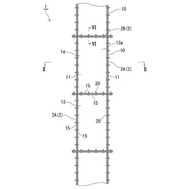 図1は、本発明の一実施形態に係る煙突の一部分を示す正面図である。