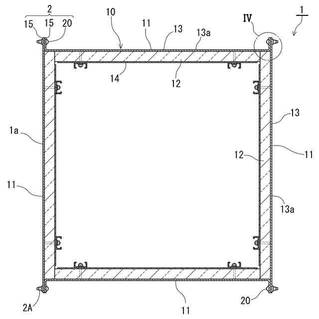 特許文献2のパネル組み立て式の煙突においては、各パネルが、断熱壁の内外両面に鋼板を設けた構造になっている。隣接する2つのパネルの外側鋼板の端部どうしが、ボルト及びナットで連結されている。