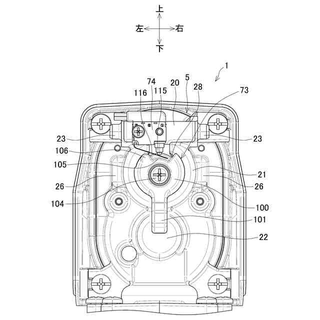 本体ハウジングを省略した操作レバー部分の背面図である(ハンマドリルモード)。