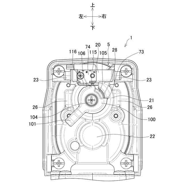 本体ハウジングを省略した操作レバー部分の背面図である(ハンマドリルモード)。