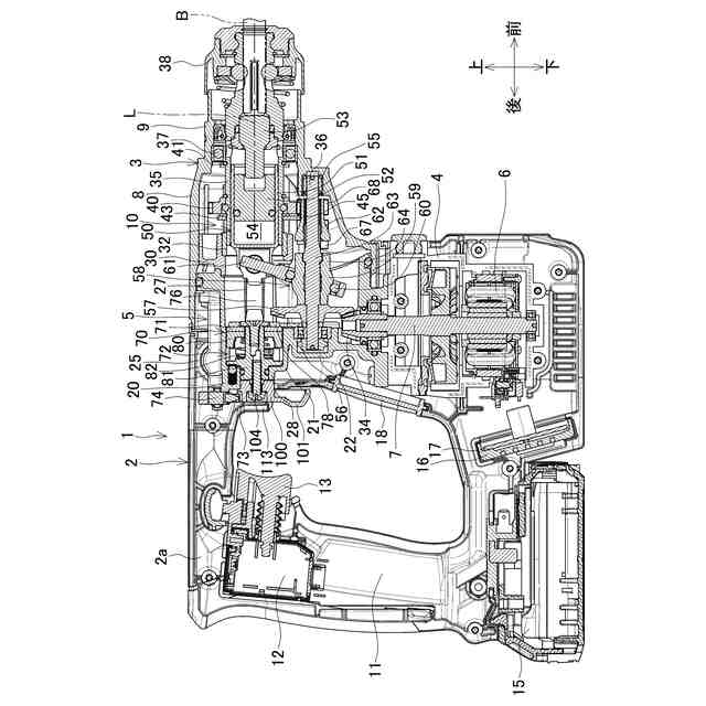 ハンマドリルの中央縦断面図である(ハンマドリルモード)。